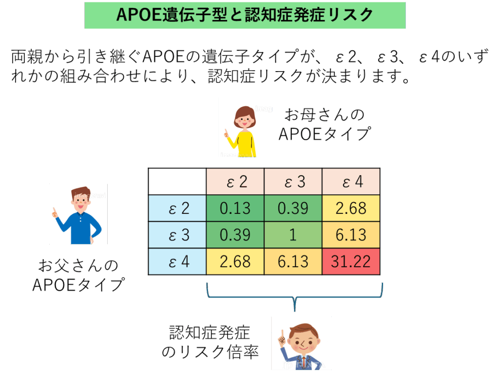 | 遺伝子型 | 人口に占める割合 | 認知症リスク |