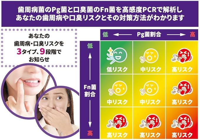 本キットはPCR検査により「原因菌(Pg菌・Fn菌)の量」を測定するため、科学的根拠に基づいた対策が可能になります。